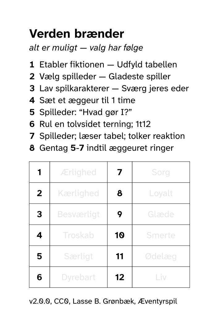 - "Verden brænder" er udarbejdet af Lasse B. Grønbæk i kraft af Æventyrspil.